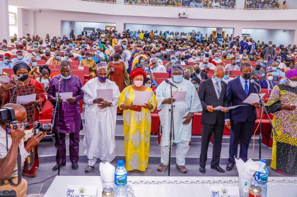 Plateau State Governor Simon Bako Lalong has sworn in the new head of the State Civil Service Engr. Sunday Chong Hyat and 14 new Permanent Secretaries with a warning for them to guard against politicising the service.