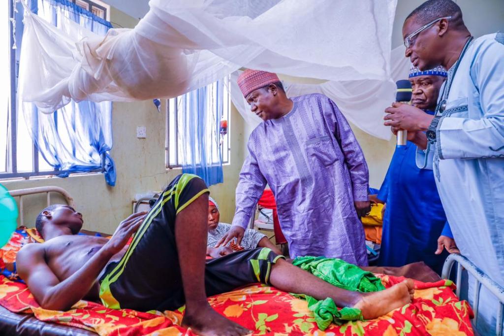 The Governor later visited injured survivors recieving treatment at the Kanam General Hospital, Dengi where he sympathised with them and directed that all their medical expenses be settled by the Government.